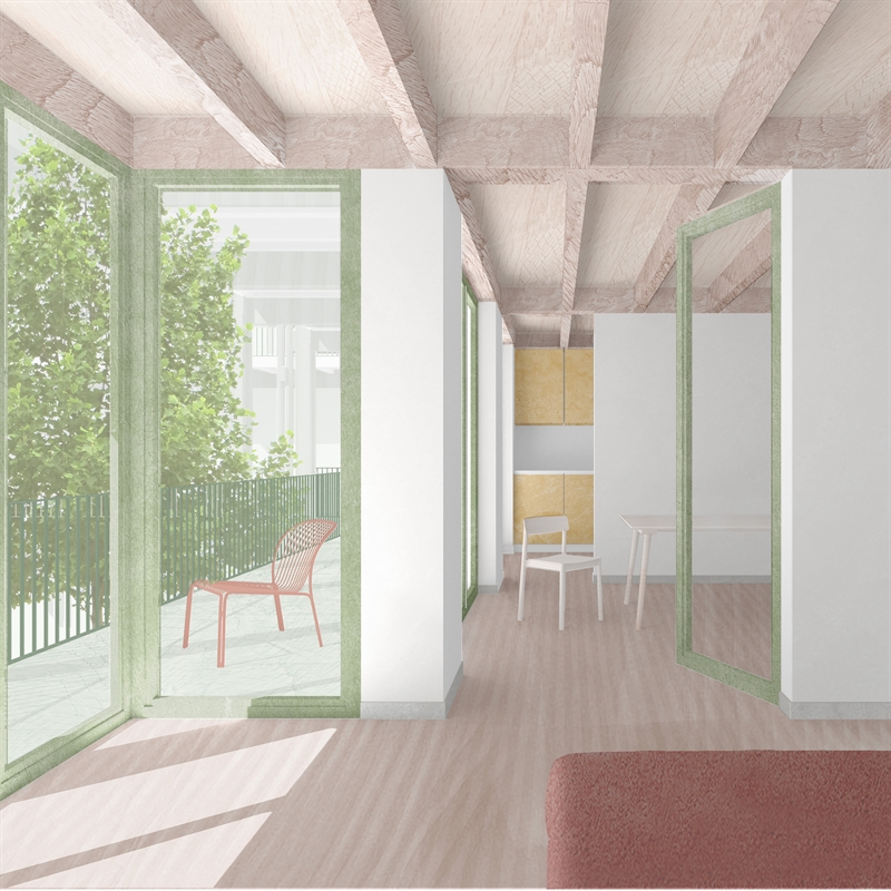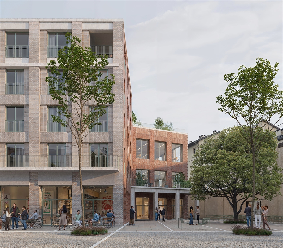 Il progetto riflette sul tema dell’inserimento “in continuità” con il contesto urbano consolidato e allo stesso tempo offre uno scenario flessibile ed aperto ai cambiamenti economico-sociali del futuro. Come in un palazzo rinascimentale la facciata è slegata da ciò che le sta dietro ed ambisce a relazionarsi con la città ed il suo intorno, come un elemento resiliente e prezioso, in muratura portante rivestito in mattoni facciavista. L’interno invece è una struttura in legno, modulare e leggera, che garantisce il rispetto dei più elevati standard energetici e una certa flessibilità ad accomodare cambiamenti nel corso del tempo.