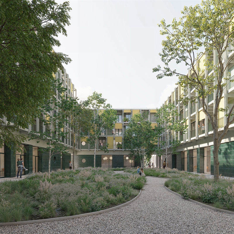 Infine, dal punto di vista ambientale, il progetto prevede una consistente porzione di spazi verdi, sia all'interno della corte che lungo gli spazi pubblici adiacenti e si concentra sulla massimizzazione delle superfici permeabili al fine di combattere efficacemente l'effetto isola di calore, di favorire l’assorbimento naturale delle acque meteoriche nel terreno rispettando l’equilibrio idrogeologico del sito e migliorando la qualità della vita urbana.